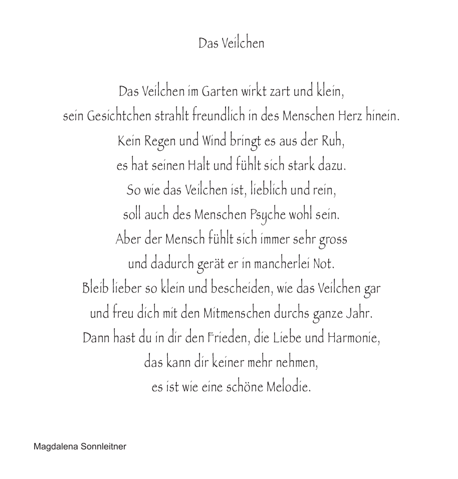 So wie das Veilchen ist, lieblich und rein,