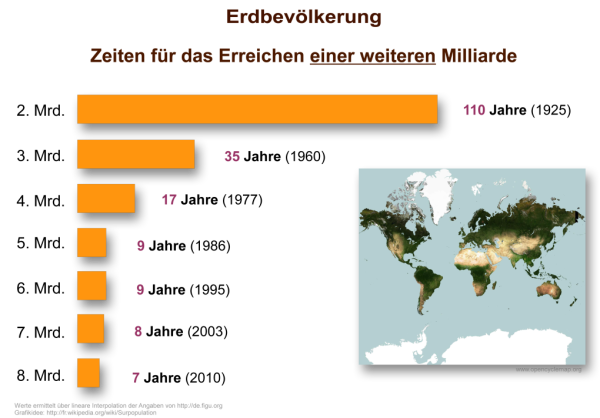 Nachfolgend finden Sie hier die konkreten Zahlen zur Entwicklung der Überbevölkerung auf der Erde.