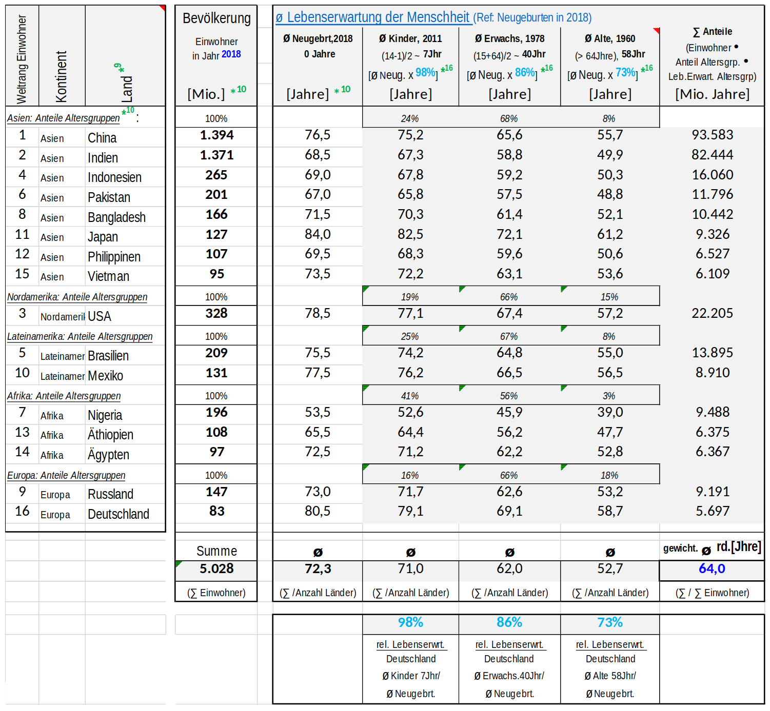 Berechnungstabelle für ∅ Lebenserwartung einer Menschheitsgeneration